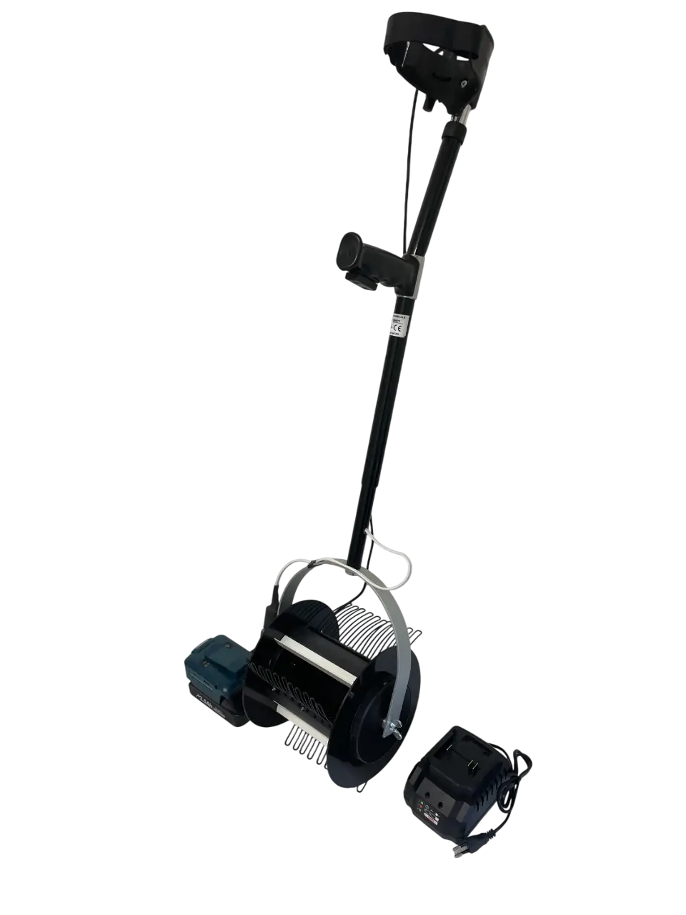 Laite toimii myös rinteissä ja epätasaisessa maastossa. Moottori pysähtyy automaattisesti, jos piikkeihin takertuu oksa tai risu, ja voit irrottaa esteen helposti painamalla laitteen peruutustoimintoa. Varsi on säädettävissä käyttäjän pituuden mukaan, joten käyttö on mukavaa kaikenikäisille. Keruupään pyörimisnopeus on portaattomasti säädettävissä juuri sinulle sopivaksi kasvillisuus ja maasto huomioiden.